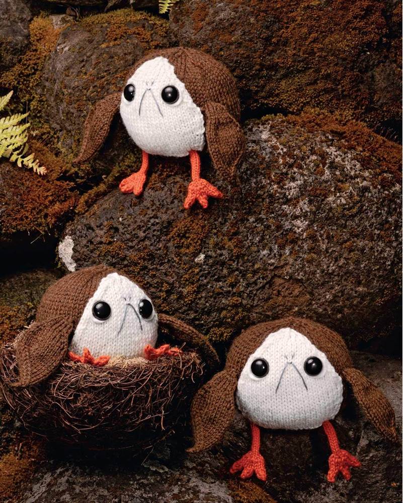 Gray opens Knitting the Galaxy with an introduction to the basics of Star Wars and an explanation as to why this particular medium of crafts works so well with the most popular space-opera franchise of the past half-decade. The projects are then divided by the above-listed categories, and include everything from Porgs to pocket Yodas to a tiny, fuzzy Chewbacca (in the Toys section), Luke Skywalker’s flight vest, Princess Leia’s Hoth snow vest, and Rey’s vest and arm wraps (in the Costume Replicas section), a Jedi Order pullover, Ewok hood, and Starfighter scarf (in the Inspired Apparel section), a BB-8 throw blanket, Droid throw pillows, and villainous mini sweater ornaments (in the Home Decor section), plus quite a few more.