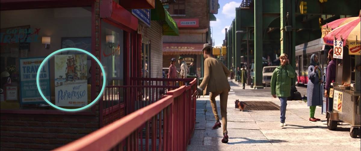 Full credit for finding this one goes to T.J. and Julie at Pixar Post. Pixar always likes to hide a reference to their next film and it’s the kind of thing you usually don’t notice until watching it again. In this case, Luca is scheduled for release on June 18th, 2021, and a travel agency 22 and Joe walk past features a poster for PortoRosso, a place you can get to by flying “Luca Airlines.”