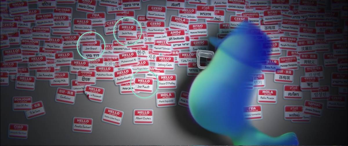22’s home is full of name tags from previous mentors of fame and renown, but there are three names significant to Disney and Pixar fans in there: Joe Grant, Joe Ranft and Jack Kirby. Joe Grant is a Disney Animation legend who worked on classic films going all the way back to Snow White and the Seven Dwarfs through the Disney Renaissance and even helped Pete Docter on Monsters, Inc. Joe Ranft is a Disney Legend who worked at Disney Animation before moving to Pixar and winning an Academy Award for the screenplay of Toy Story. He also provided the voice for Heimlich in a bug’s life. Jack Kirby was a famous comic book artist, writer and editor at Marvel and helped create many of the company’s most famous characters including Spider-Man, Captain America, X-Men, Thor and Hulk.
