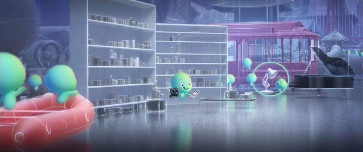 The lamp that hops on and then pops the Pixar Ball, also known as Luxo Jr., is also in the Hall of Everything. I’m pretty sure that trolly is from San Francisco shots of Inside Out, too.
