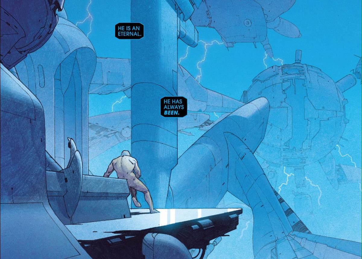 Without going too much into the lore of the Eternals right off the bat, we are introduced to Ikaris as he awakens once again in The Exclusion. The issue also introduces us to Eternals politics. Namely, the “exclusion” of those who have committed great sins.