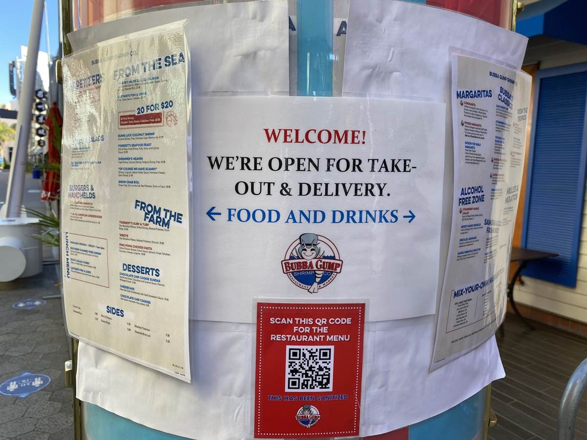Other restaurants like Bubba Gump Shrimp Co. are open for take-out and delivery, though eating and drinking are not currently permitted on Universal property.