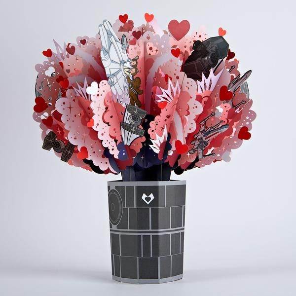 If a card is more your style, these cute pop-ups are playful and romantic. Star Wars and Marvel fans will appreciate the clever use of their favorite heroes and antiheroes, and Disney fans will adore the Mickey and Minnie and Jack and Sally options.