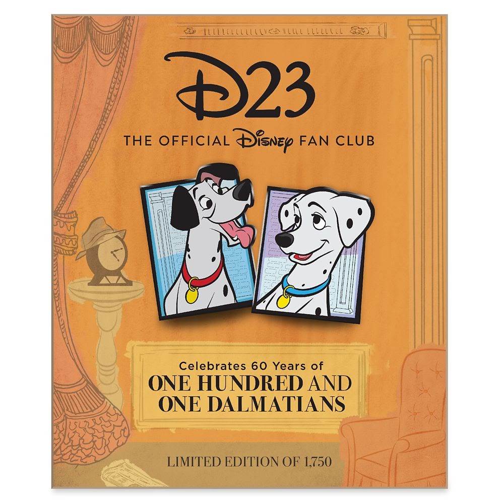 “Disney fans will want to ''spot'' this pin set, celebrating 60 years of One Hundred and One Dalmatians, created especially for D23 by Disney artist Jose Velasquez. Featuring canine favorites Pongo and Perdita in swinging 1960s-inspired styling and color, this D23 Gold and Gold Family Member-exclusive set of two pins is a ''paw-some'' addition to any collection!”