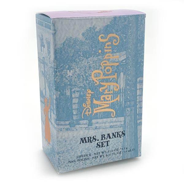 - Mrs. Banks Lipstick: This light peachy hue is inspired by Mrs. Banks lip color in Mary Poppins and comes in a collectible tube with colors that match her delightful blue and yellow dress!