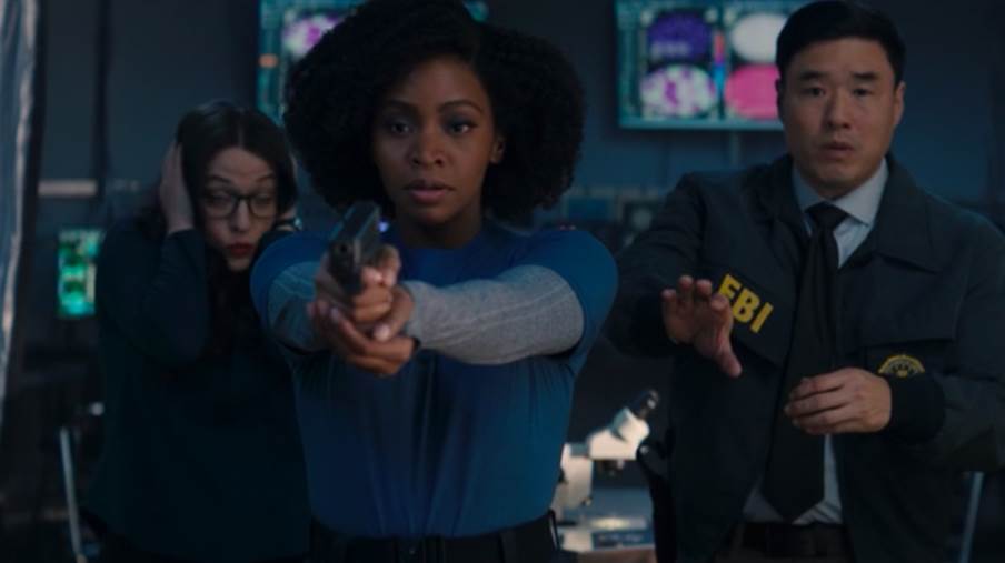 As the intro comes to an end, we hear some interference and come back out to the real world. We hear Monica being questioned about her experience in the sitcom world and she describes it as “pain” and “Wanda’s voice in my head.” She also says there was a hopeless feeling keeping her down and uses the word “grief.” We see that she’s undergoing some sort of brain scan before Jimmy Woo and Darcy enter. They tell Monica there’s a briefing in 10 minutes before the doctor tells them they need to run another scan because something is wrong with the machine. Darcy points out that the scans are blank. When the doctor says they need to draw more blood, Monica tells her they’re done here and begins to get dressed for the briefing.