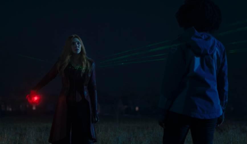 An alarm begins to sound and an agent explains that there’s another breach. Everyone rushes to the border of the Hex where they see Wanda emerge from the forcefield, dragging their destroyed drone. Wanda gives S.W.O.R.D. their “only warning” to stay out of her home. She tells them she won’t bother them but Hayward explains she’s taken an entire town hostage. When Monica approaches, Wanda begins to use her powers, with the familiar red glow. Monica pleads with Wanda to trust her explaining that she knows she’s an ally. Wanda questions how she can help and explains that she has what she wants. She then uses her powers to have the soldiers turn their guns on Hayward and retreats back into the Hex.