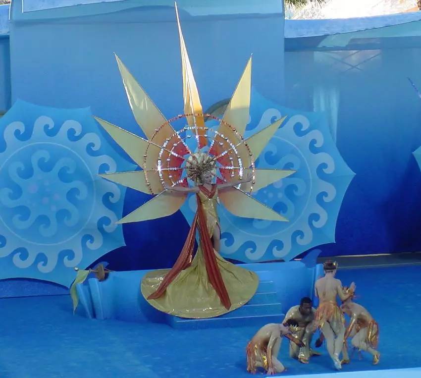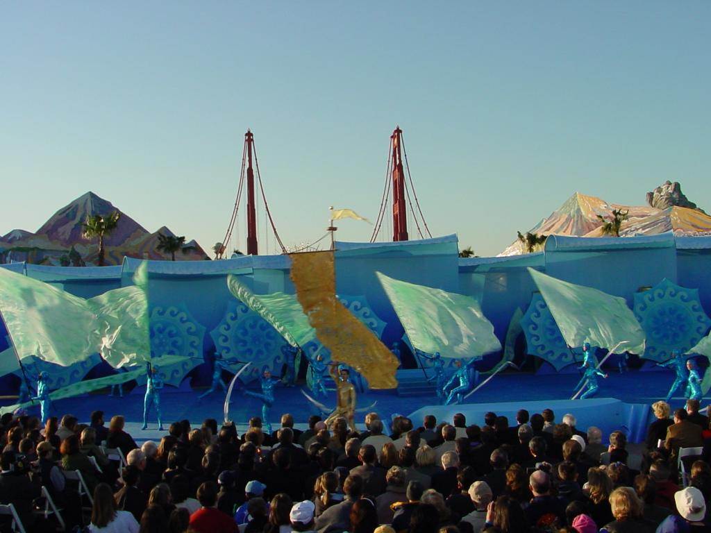 Guests of the early version of the park may recall that there was a different entrance when the park opened than there is today, indicative of a postcard one might buy while visiting California, at least, when it was viewed from afar. Up close, everyone just saw giant letters spelling out “CALIFORNIA” with a smaller version of the Golden Gate Bridge. It was the reveal of those letters during this opening ceremony that created the first truly memorable moment of the celebration. Those aforementioned banners all came together as a sun rose over the backdrop causing “the tide” of ocean wave dancers to ebb and reveal the letters at the entrance of the new park.