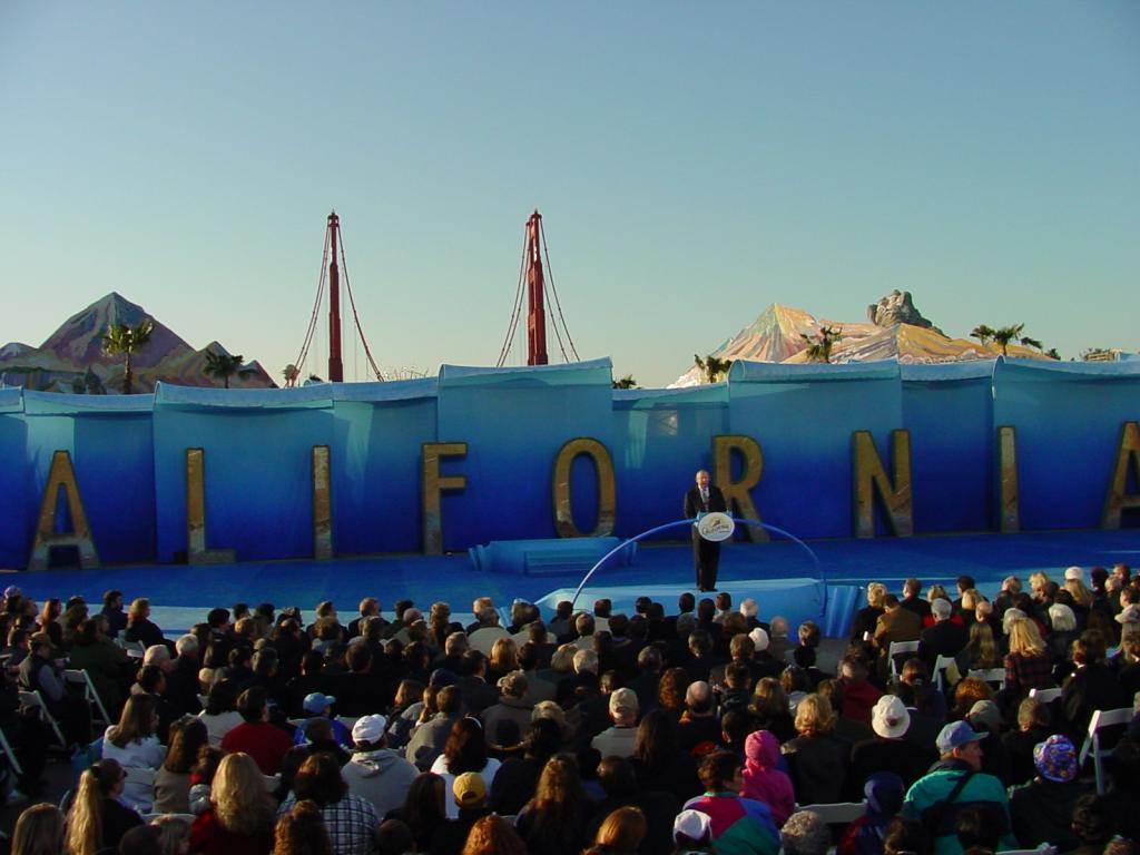 “To all who believe in the power of dreams…Welcome! Disney’s California Adventure opens its golden gates to you. Here we pay tribute to the dreamers of the past…the native people, explorers, immigrants, aviators, entrepreneurs and entertainers who built the Golden State. And we salute a new generation of dreamers who are creating the wonders of tomorrow…from the silver screen to the computer screen…from the fertile farmlands to the far reaches of space. Disney’s California Adventure celebrates the richness and the diversity of California…its land, its people, its spirit and above all, the dreams that it continues to inspire.”
