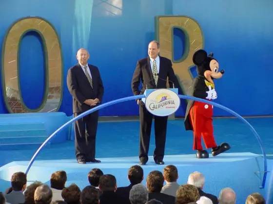 It was on Paradise Pier where the two guards finally caught up with Barry and Richard, as they returned to the station after their spin on California Screamin’, and escorted them to Michael Eisner, who had no idea what they wanted in the first place. Turns out, Michael isn’t the “big cheese,” that would be Mickey Mouse, who showed up saying he wanted to take Barry and Richard on a tour through the park, first stop: California Screamin’.