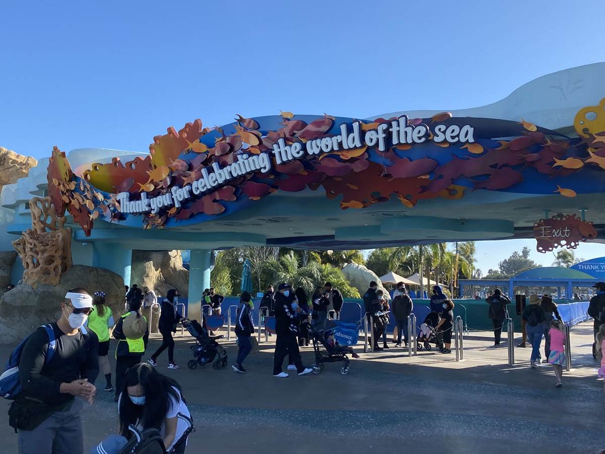 Upon arriving at the park, we found additional screening measures and queue dividers set up outside the entrance. A sign informed us that due to “current state of California COVID-19 guidelines,” indoor exhibits, rides, and outdoor play elements would not be available to SeaWorld guests.