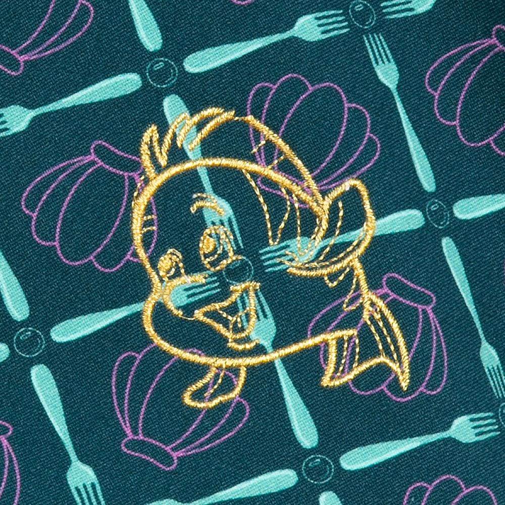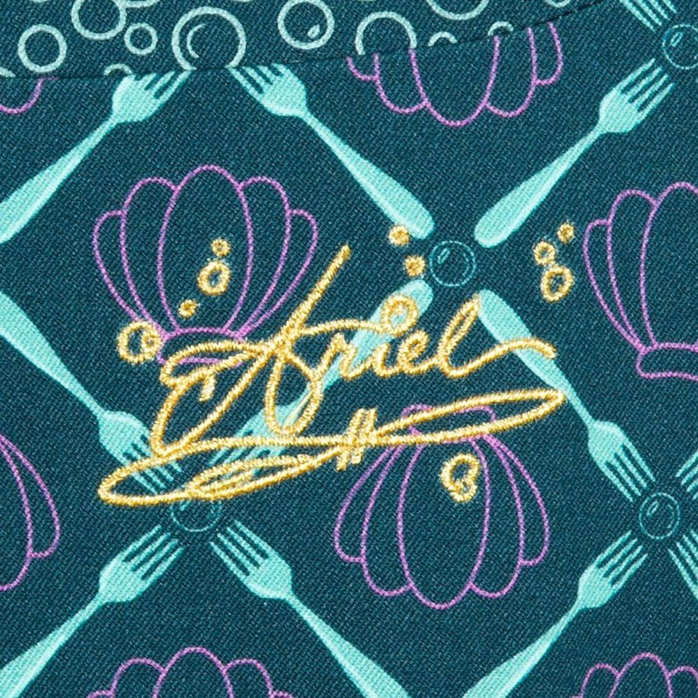 “Our Ariel-inspired dress with flared hem is simply to dive for! A dinglehopper and seashell pattern, plus bubble trim around the surplice neckline and embroidered details make this deep-sea treasure a fin-tastic choice for any occasion.”