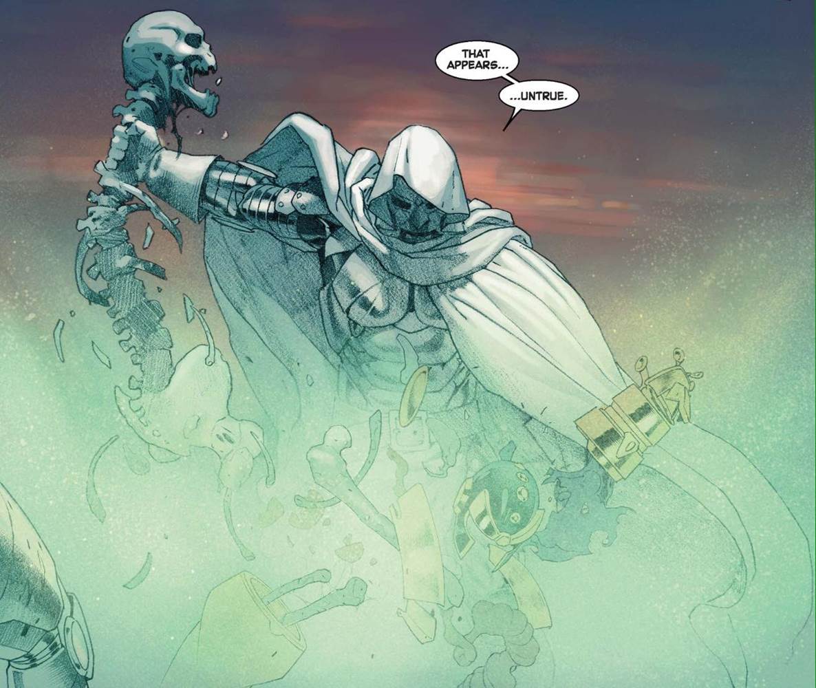 Doom’s power goes unchecked for a long time before a revolution led by the heroes and even some well-known villains. One of those well-known villains, the Mad Titan Thanos, decided to challenge Doom. Things… didn’t go his way. If readers were doubting how powerful Doom was in this particular story, he removed all of those doubts… and Thanos’ spine in this panel.