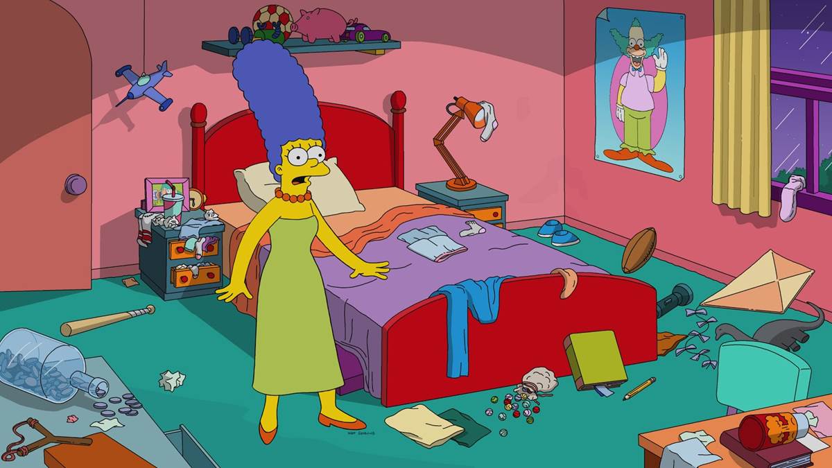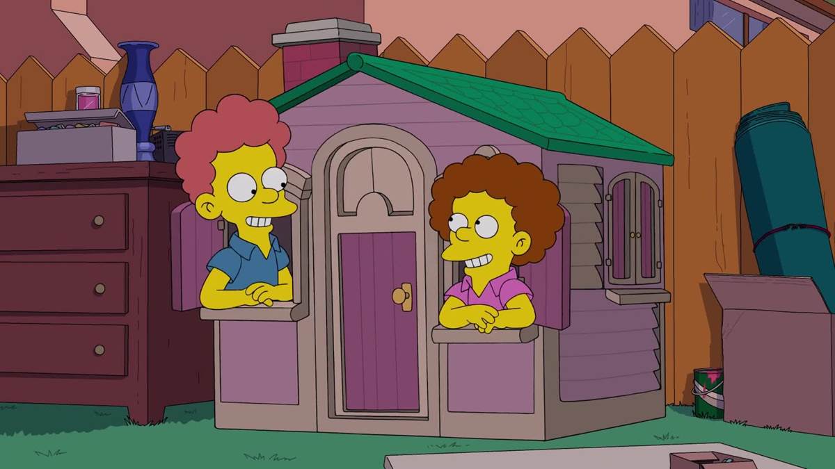 The episode begins with an elaborate musical number parodying West Side Story as Springfield celebrates Ned Flanders’s (voiced by Harry Shearer) garage sale. Marge (Julie Kavner) asks Ned if he really wants to sell precious possessions like Rod’s (Pamela Hayden) baby teeth. The bullies are smashing Ned’s collector plates (after purchasing them) while Lenny (also Shearer) and Carl (Alex Désert) make fun of his sweaters. Ned declares he’s not going to sell any more items unless he’s certain they’re going to a good home. Bart (Nancy Cartwright) and Milhouse (Hayden) offer to buy two boxes of books, while Nelson (Cartwright again) picks up a jar full of all the swear words Ned had cut out of them.