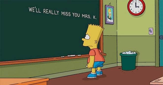 In a post-credit sequence, we see a montage of Edna Krabappel’s life as a teacher, with her cat, with Ned Flanders, and with Bart.