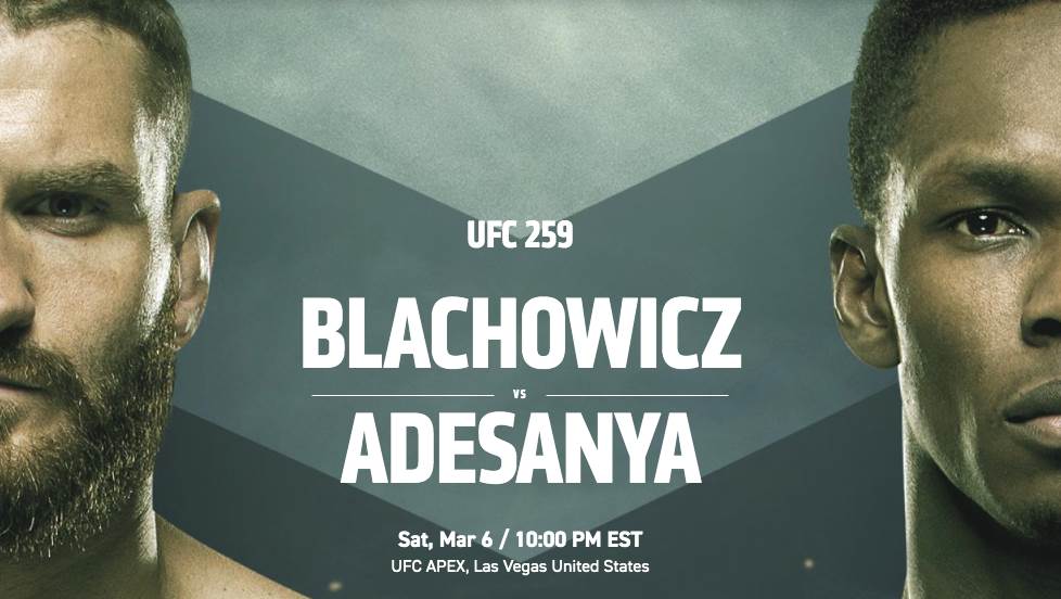 UFC 259 will be held Saturday night, March 6 at 10 PM ET. Fight fans can order the pay per view through ESPN+ and receive a special offer: $89.98 for UFC 259 and an ESPN+ annual plan. ESPN+ subscribers can order the pay per view for $69.99.