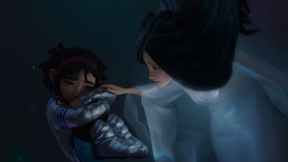 Fei Fei does eventually encounter the moon goddess, Chang’e. But it’s not what she expects. Almost like an international pop-star, Chang’e (voiced by Hamilton’s Phillipa Soo) takes the stage with a rousing number. Picked up by Guillermo, much to Glen’s delight, there was a reason for this. A goddess would be represented with softness, and even gentle movements, almost like a traditional fairy tale representation. They made Chang’e harsh, “an urbanite,” to give subtle reference that Fei Fei’s mother was the true goddess. Of course, by the end of the film we do see a softer side of Chang’e, one that represents those traits as well, albeit briefly. Don’t be confused though, Chang’e is not a villain. There are no villains in this story, aside from the unnamed villain, the concept of loss. As Glen put it, “Nobody can stop that moving train.” A story the crew know all too well, as the screenwriter, Audrey Wells, passed away from cancer while working on the film. Tones that Glen said can be seen in the film with scenes like the “Chamber of Exquisite Sadness” which can only come from a place that someone dealing with something like that can grasp. The movie was also written as a gift from Wells to her daughter, knowing what would be occurring in the future. Wells never got to see the final film.
