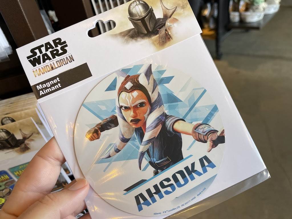 Veering away from The Mandalorian for just a moment we come to this circular “Ahsoka” magnet showing the energetic Jedi as she looks in the Clone Wars series. She’s in a fighting stance, ready to handle whatever comes her way.
