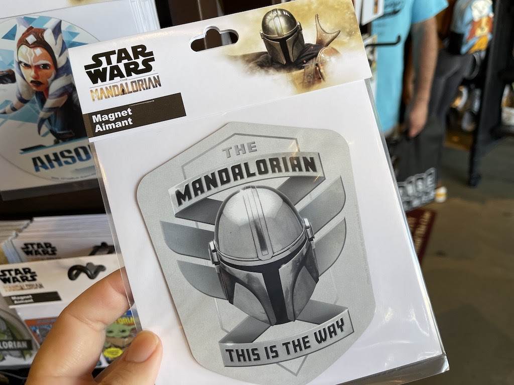Ok, back to the Disney+ series we find a grey magnet with Din Djarin’s (aka Mando’s) helmet and the words to the Mandalorian creed: “This is the way.”