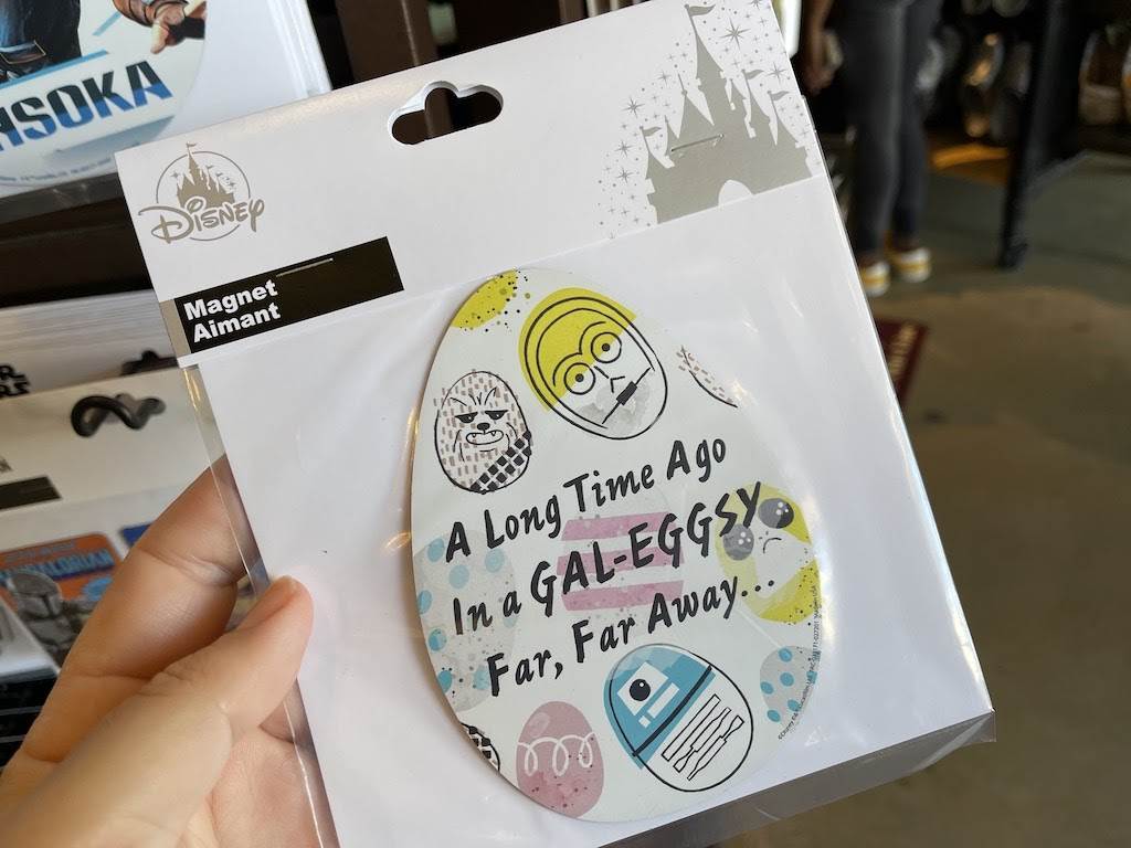 And finally, we wrap this post up with an Easter-themed magnet that includes some of the Skywalker Saga’s best characters! Chewbacca, C-3PO, R2-D2, and a Porg have morphed into seasonally appropriate shapes amidst text that reads, “A long time ago in a GAL-EGGSY far, far away…”