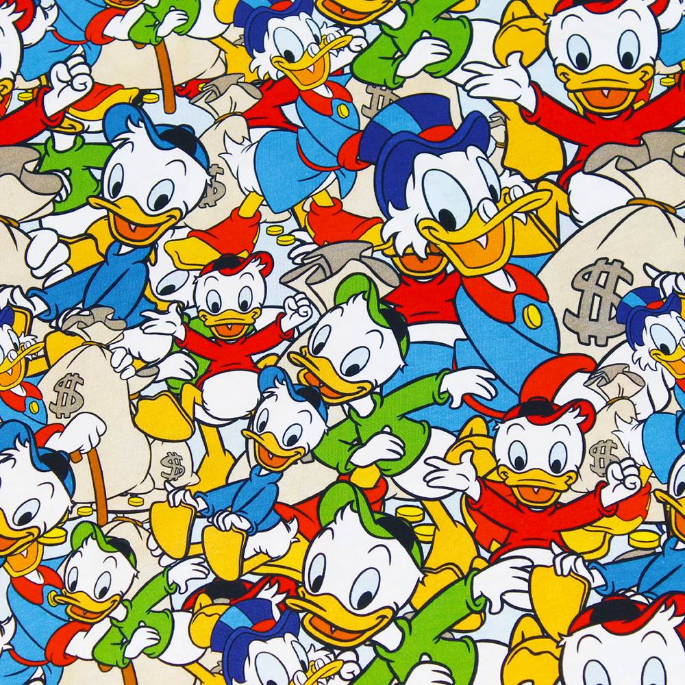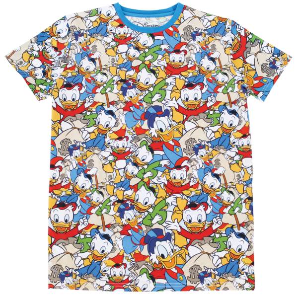 “The whole DuckTales squad is here in our classic all-over print featuring Huey, Dewey, and Louie in action.”