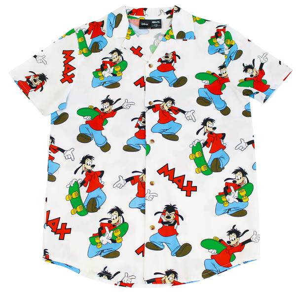 “Rock A Goofy Movie this spring and summer with our latest button-up camp tee featuring Max and his trusty skateboard.”