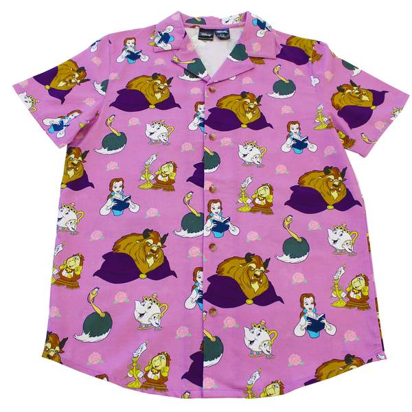 The shirt features a unique all-over print design and a 100% cotton construction so it’s great for adding a little Disney love to your look anytime, anywhere, any adventure. Characters include Belle, Beast, Mrs. Potts, Chip, Cogsworth and Lumiere.