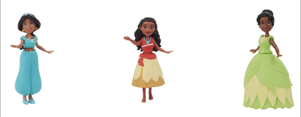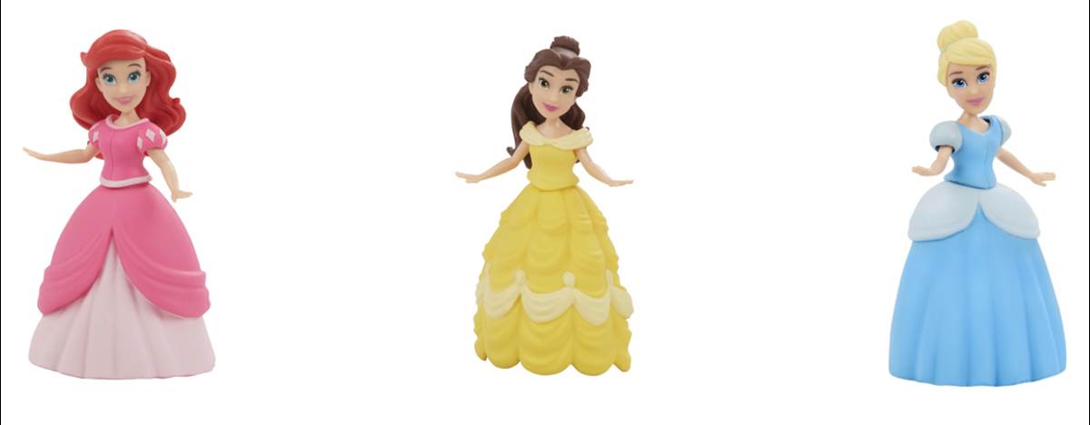 - Which Disney Princess character will it be? Series 1 of these blind box toys includes Ariel, Belle, Cinderella, Jasmine, Moana, and Tiana, each featuring a soft, flexible removable 2-piece dress so kids can pretend they're getting her ready for a royal ball.