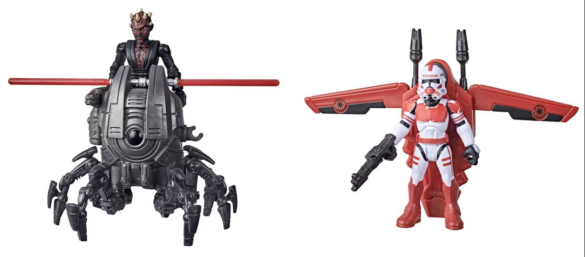 - Features the Darth Maul Probe Pursuit Figure and Vehicle and the Shock Trooper Secure The City Figure and Vehicle.