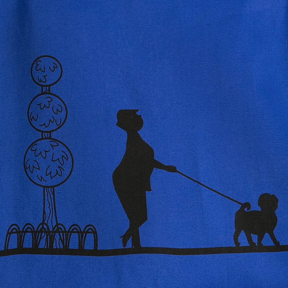 Also on display across the dress are images of neighboring dogs and their owners enjoying a walk through the park.