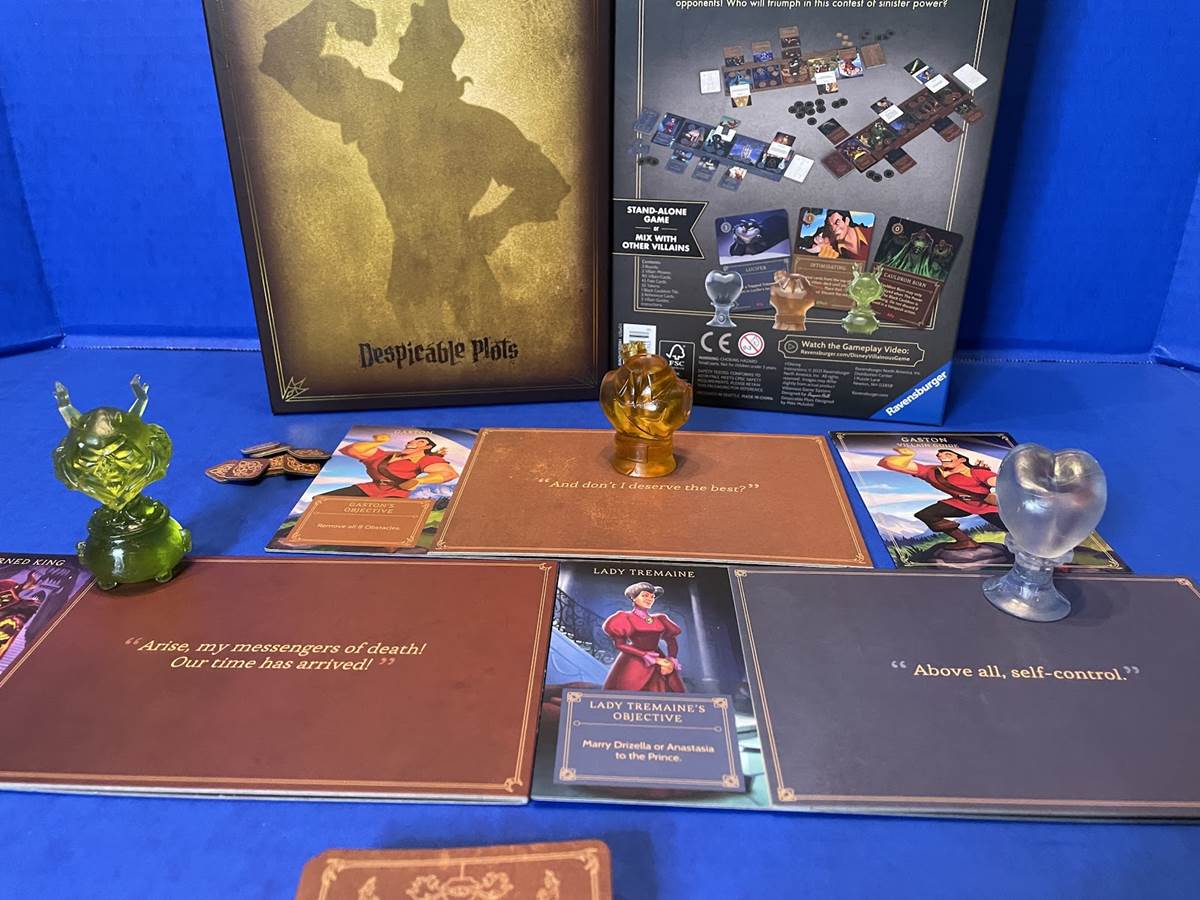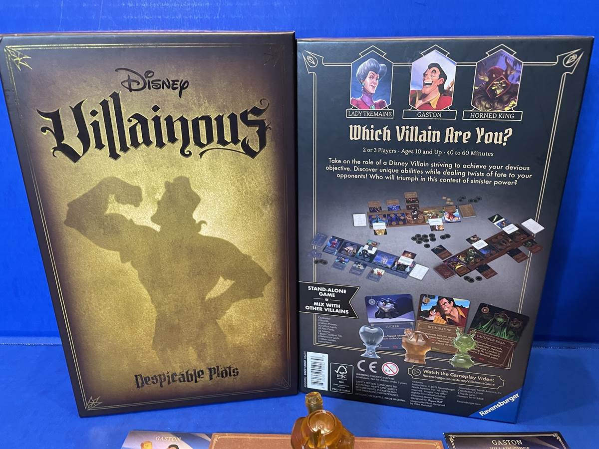 The award-winning Disney Villainous game from Ravensburger recently released its 5th expansion, playable as its own game or added to any of the previous releases. Ravensburger was kind enough to send along a review copy of Disney Villainous: Despicable Plots, the title for which was inspired by Gaston from Beauty and the Beast.