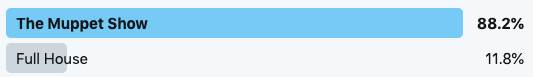Before we move on to today’s matchup, let’s take a look at our last result. We closed out the first round with another strong showing from the favorite, as The Muppet Show routed Full House to claim the final spot in the Elite 8.