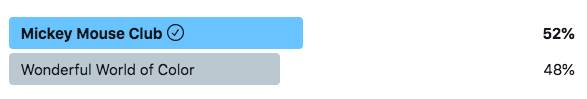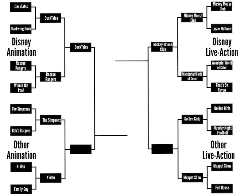 Before we move on to today’s matchup, let’s take a look at our last result. We had one of our closest matchups to date as Mickey Mouse Club just barely snuck by Walt Disney’s Wonderful World of Color to claim another spot in the Final 4.