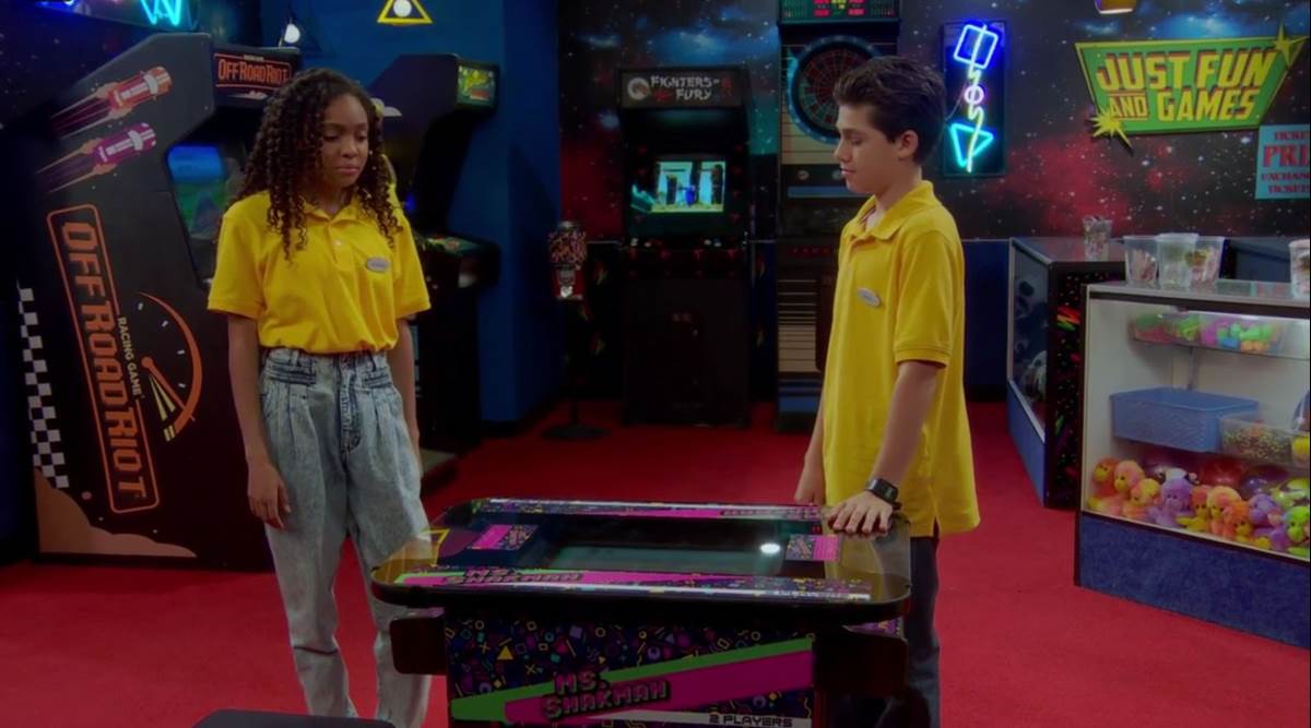 Max arrives at the arcade to find Leo with lots of prize boxes to unpack. Leo’s aunt is in town along with his cousin Alisha, who shows up at the arcade just as he mentions her name. A customer points out that the Crush-A-Mole machine is broken and Alisha fixes it with a kick, having lots of experience at her family’s arcade. Max is impressed and tells Alisha she should work there, but Leo is not excited. “It’s bad enough she’s at my school and my house, now she’s gonna be here?,” Leo asks. “She’s like a human Crush-A-Mole.”