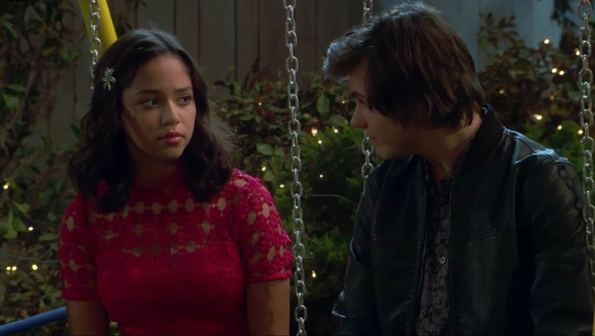 A little while later, Sydney returns home dejected, having searched the dance for Harry to no avail. With no ice cream in the freezer, she decides to check the garage and she finds Harry sitting on her backyard swingset. He tells her he left the dance after one song because he felt like he shouldn’t be there without her. Sydney apologizes for trying to play it cool. Harry pulls out the macaroni necklace and gives it to Sydney, who puts a song on her phone so they can share a dance.