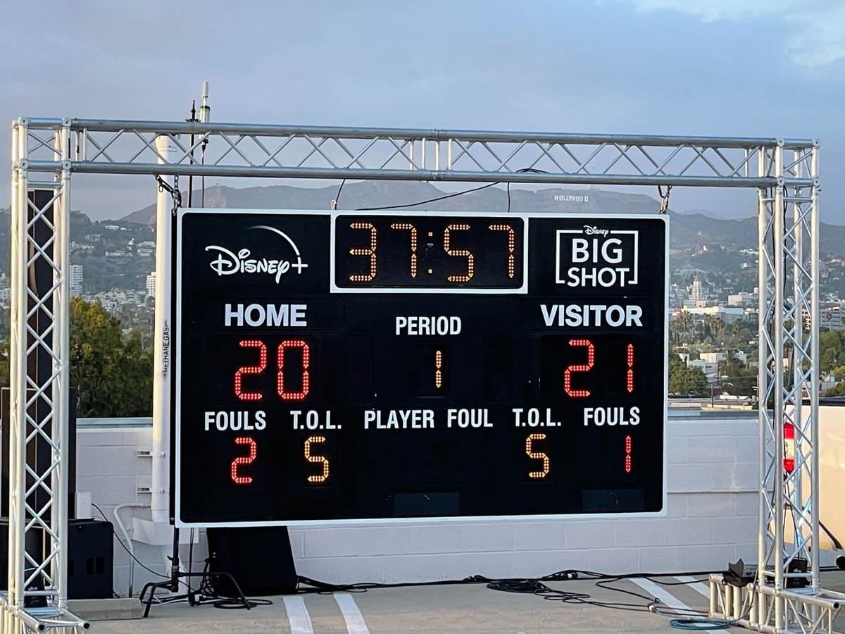 Disney+ celebrated their new original series Big Shot last night with a drive-in premiere atop a parking garage in L.A. With the Hollywood sign and Griffith Park Observatory glowing in the distance as the sun set, it was a beautiful way for the cast and crew to celebrate their hard work in a safe, socially distant setting. We were fortunate enough to get an invite to the premiere and wanted to share some of the fun of the night.