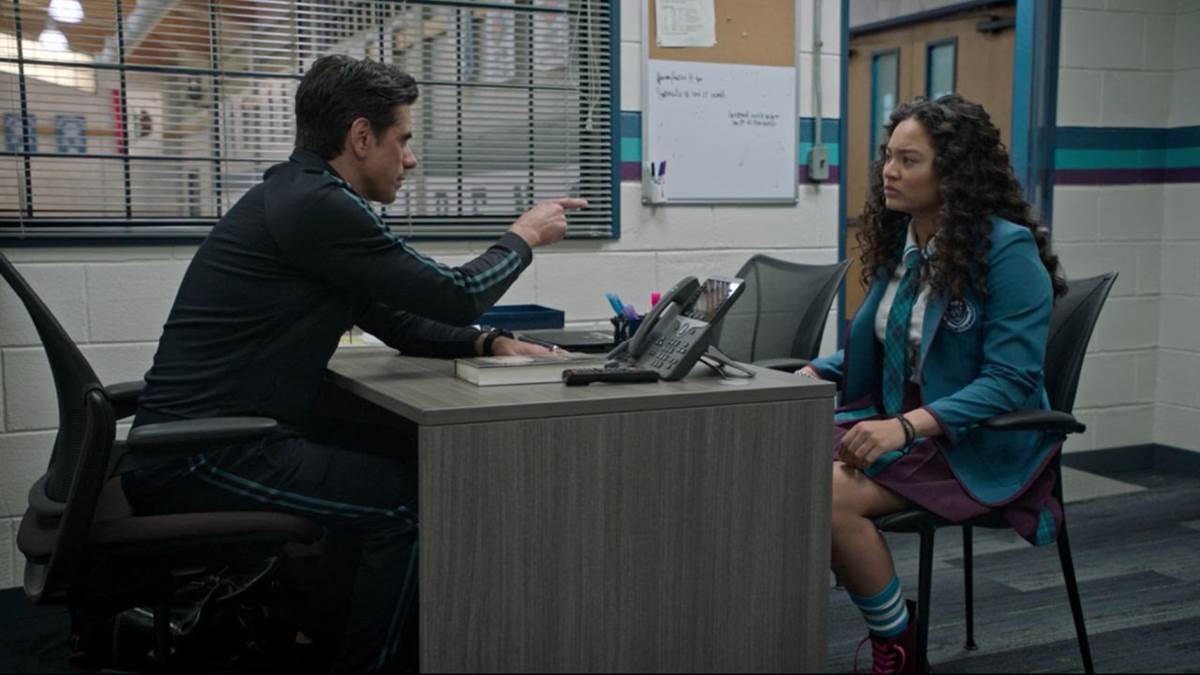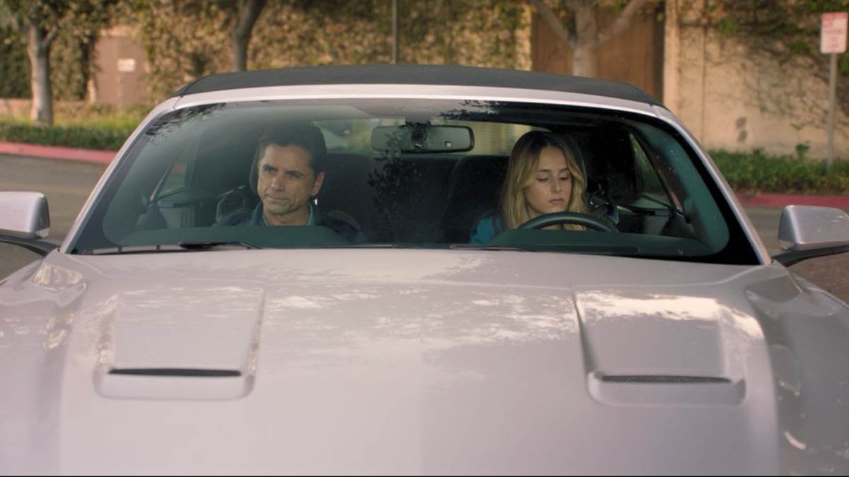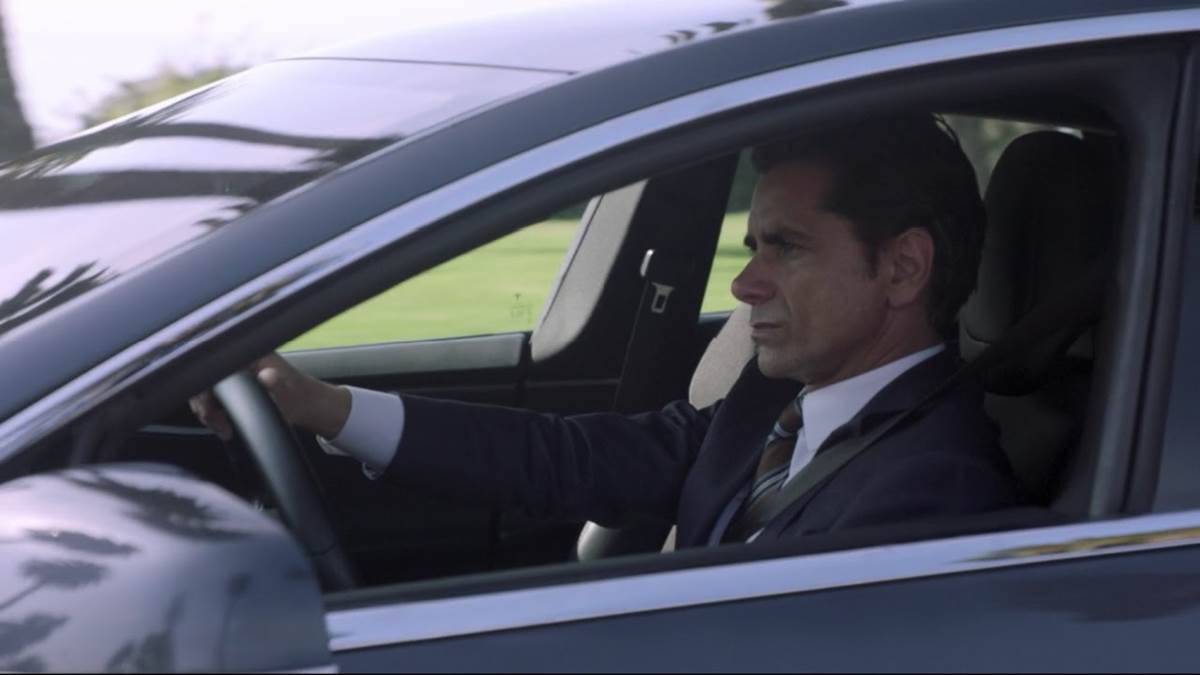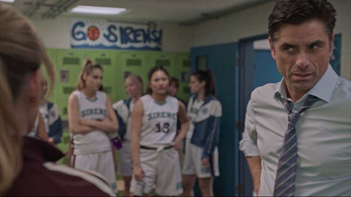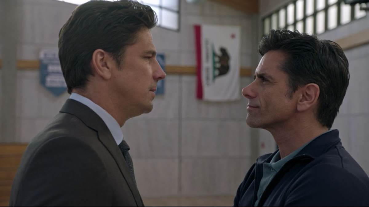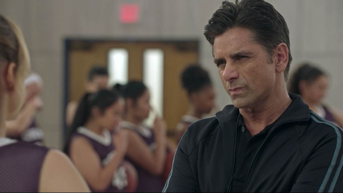 The series starts with Marvyn Korn (John Stamos) driving his Tesla from Chicago to San Diego, cutting to flashbacks of his time coaching the University of Wisconsin’s men’s basketball team, part of the NCAA. We see that he’s led them to victory and that he can also be tough. We then get a flashback that lets us know why he’s making this long drive to the west coast.
