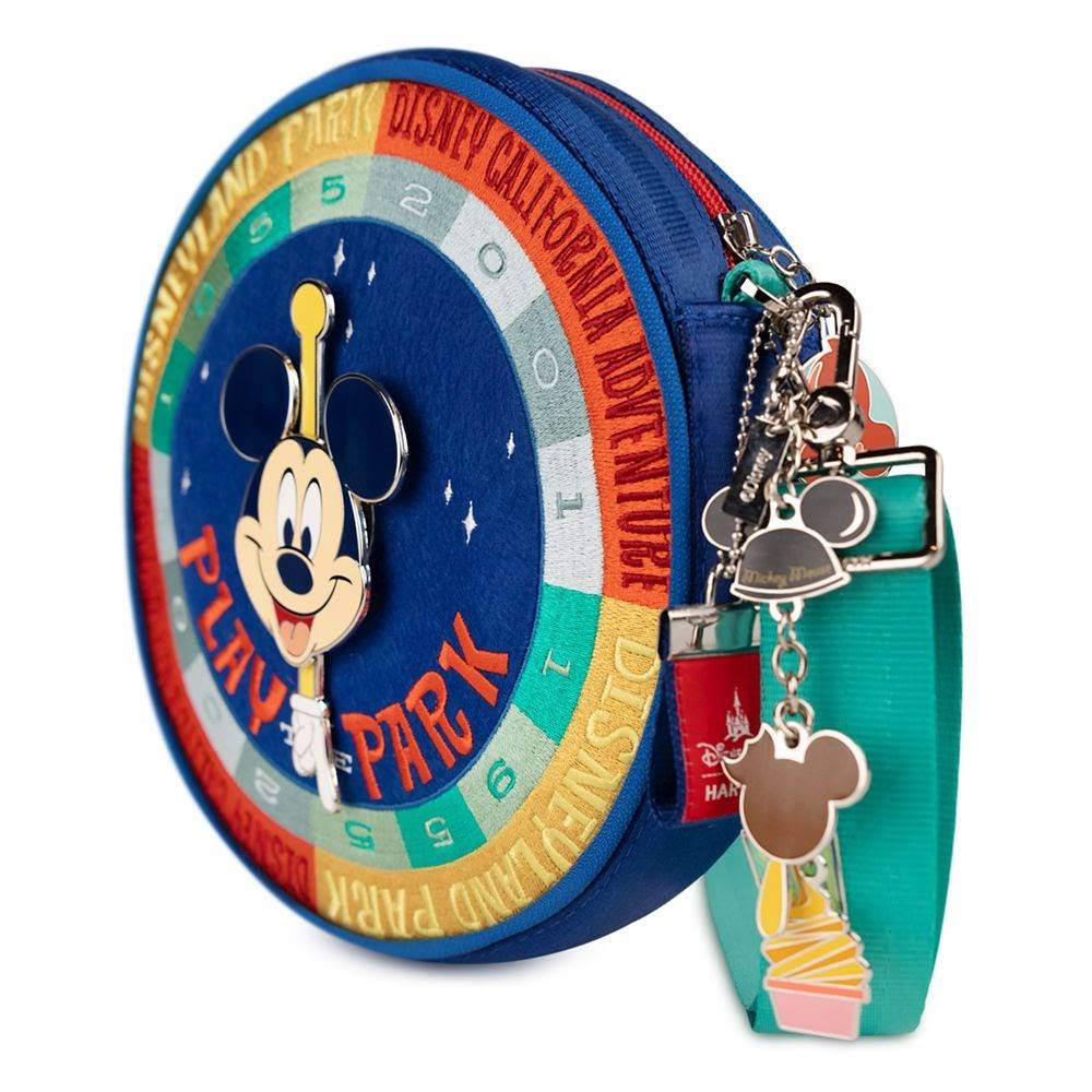 “Can't decide which Disneyland Park to visit? Let the Fun Wheel decide! Twirl the moveable enamel Mickey spinner to see whether you're heading to Disneyland or Disney California Adventure. This convertible bag can be worn as a crossbody or as a backpack.”