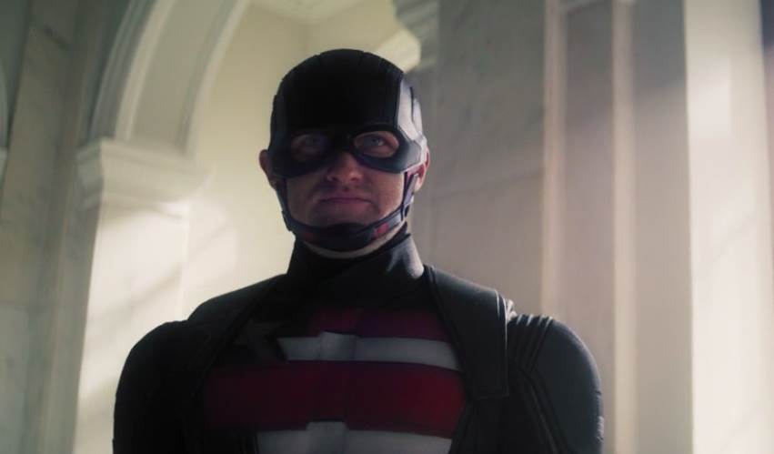 Next, we see Olivia and Val getting the news of the bombing. Val points out that Zemo got the last laugh and joke about planning the bombing herself. Val asks what’s taking John so long and yells to hurry him up. He steps into the room wearing his new suit, a black version of his Captain America suit that resembles the U.S. Agent one from the comics. Val even calls John by that codename before leaving. John and Olivia show their excitement, with John exclaiming several times “I’m back!”