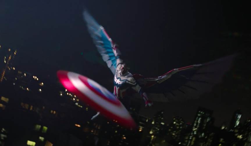 As Sam walks off, he meets with Bucky who tells him “nice job, Cap.” The two of them find Sharon who is bleeding but refuses to go to a hospital. Someone calls for Sam’s attention and before he leaves, he tells Sharon he didn’t forget his promise. A man tells Sam they’ve tracked the last Flag Smasher and asks for his help. Sam flies off with his triumphant music.