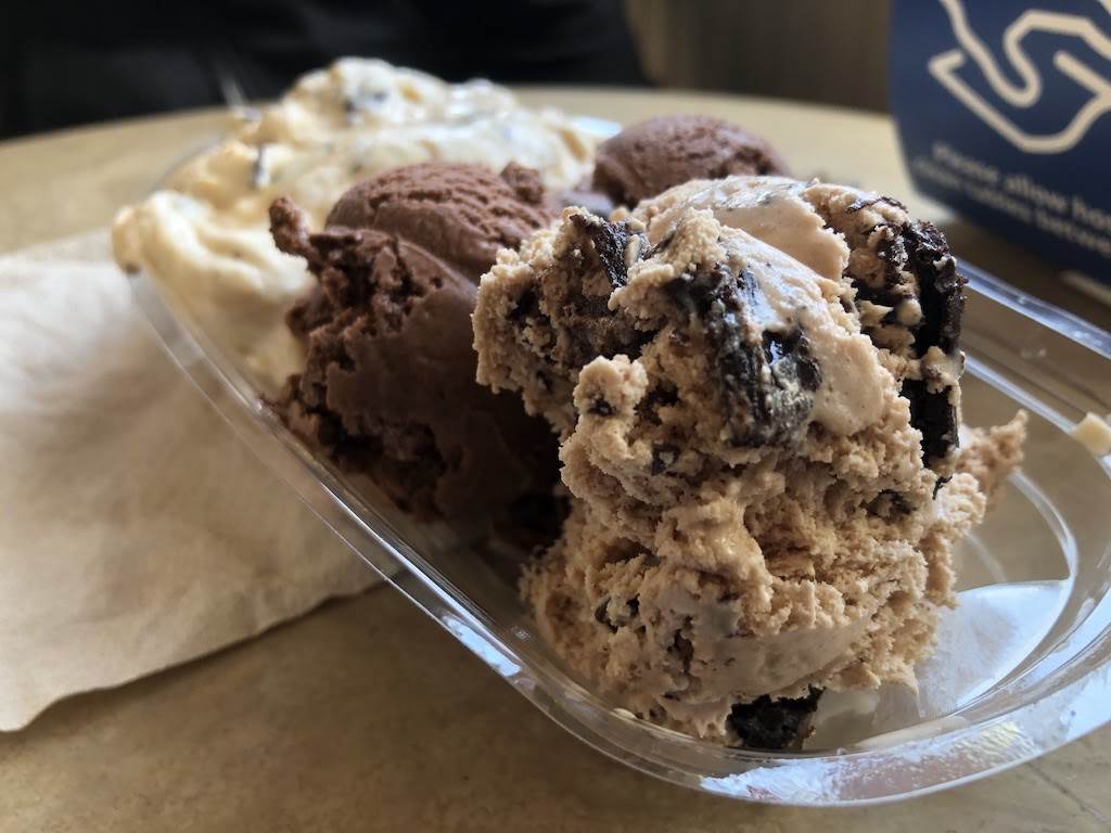A triple scoop of ice cream might not sound like the most excitingly original culinary concept, but it sure sounded yummy. Plus, these weren’t just any ice cream scoops as the standard chocolate scoop was joined by a salted caramel vanilla as well as a French silk, which featured marshmallow bon bons. Oh! And they’re all homemade in good ol’ SDC. Not only are these three flavors we probably wouldn’t have tried together otherwise but also might have overlooked them entirely. That would have been a mistake as they were incredibly delicious on their own — and worked even better in concert. Of the three, the plain chocolate was obviously the least exciting, but it was well served in the center where it could be mixed with the more intricate flavors on either side. Overall, this was a great sweet treat we definitely didn’t regret getting. Did we mention that their ice cream is homemade?!