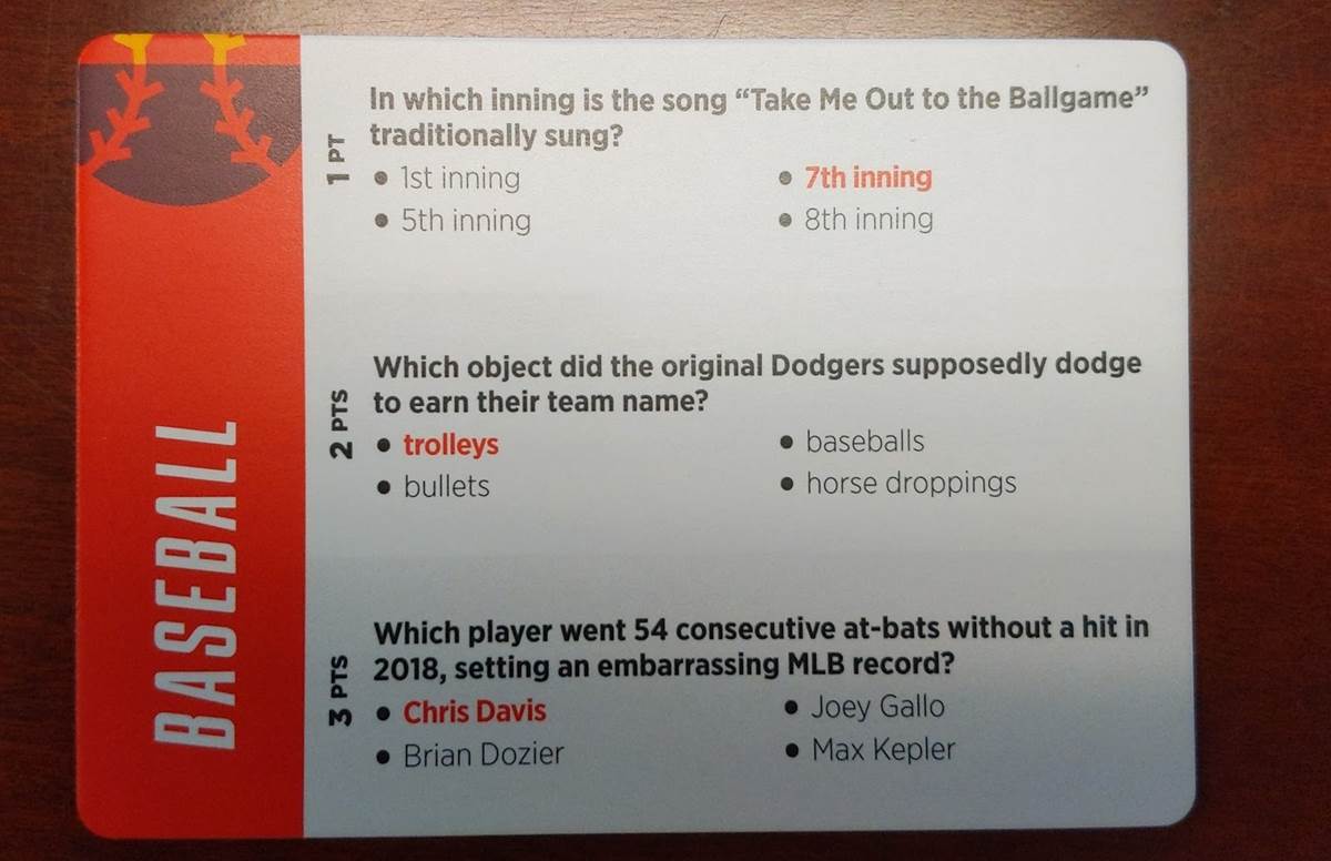 By the way, if you have players with varying degrees of knowledge, you could add a golf-style handicap on your own as well. Questions are posed with multiple choice answers so there’s room to present them as open-ended to really challenge teams or reduce options for players who may appreciate better odds in selecting the right answer.