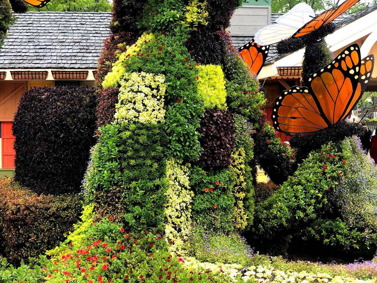 Throughout the park you’ll encounter impressive sculptures from a partnership with the internationally-acclaimed Mosaicultures flower sculpting team. The displays are different from a typical topiary that consists of a single plant trimmed or trained into a shape. These sculptures can feature thousands of different plants covering a framework.They remind me a lot of my childhood days watching the Rose Parade, in awe of the landscape designers ability to create colors and textures out of plants. These displays have an even greater challenge as they don’t last for a single day, but have to extend throughout a several month festival. Occasionally, you’ll catch horticulturists making adjustments and sprucing up these living pieces of art.