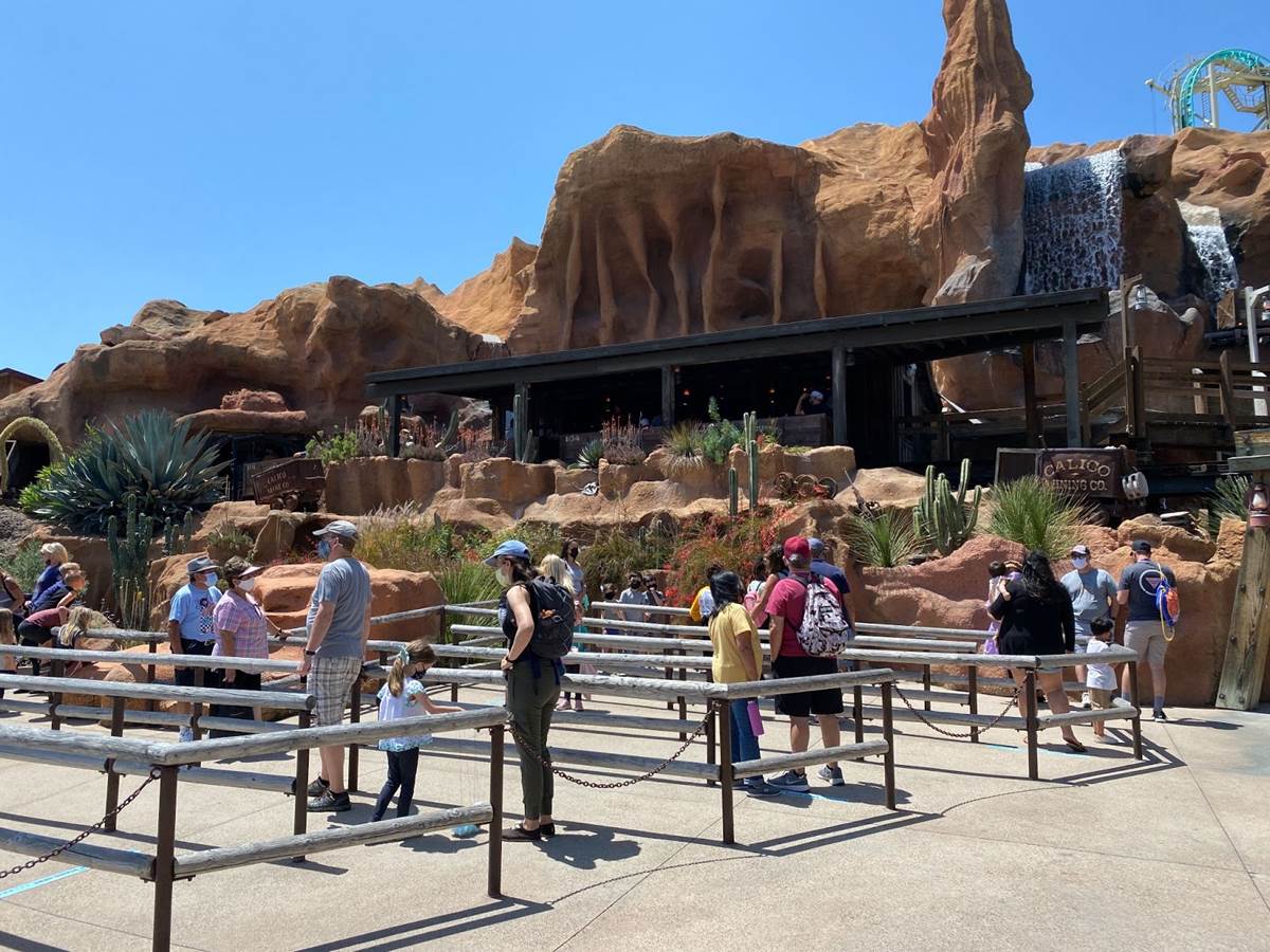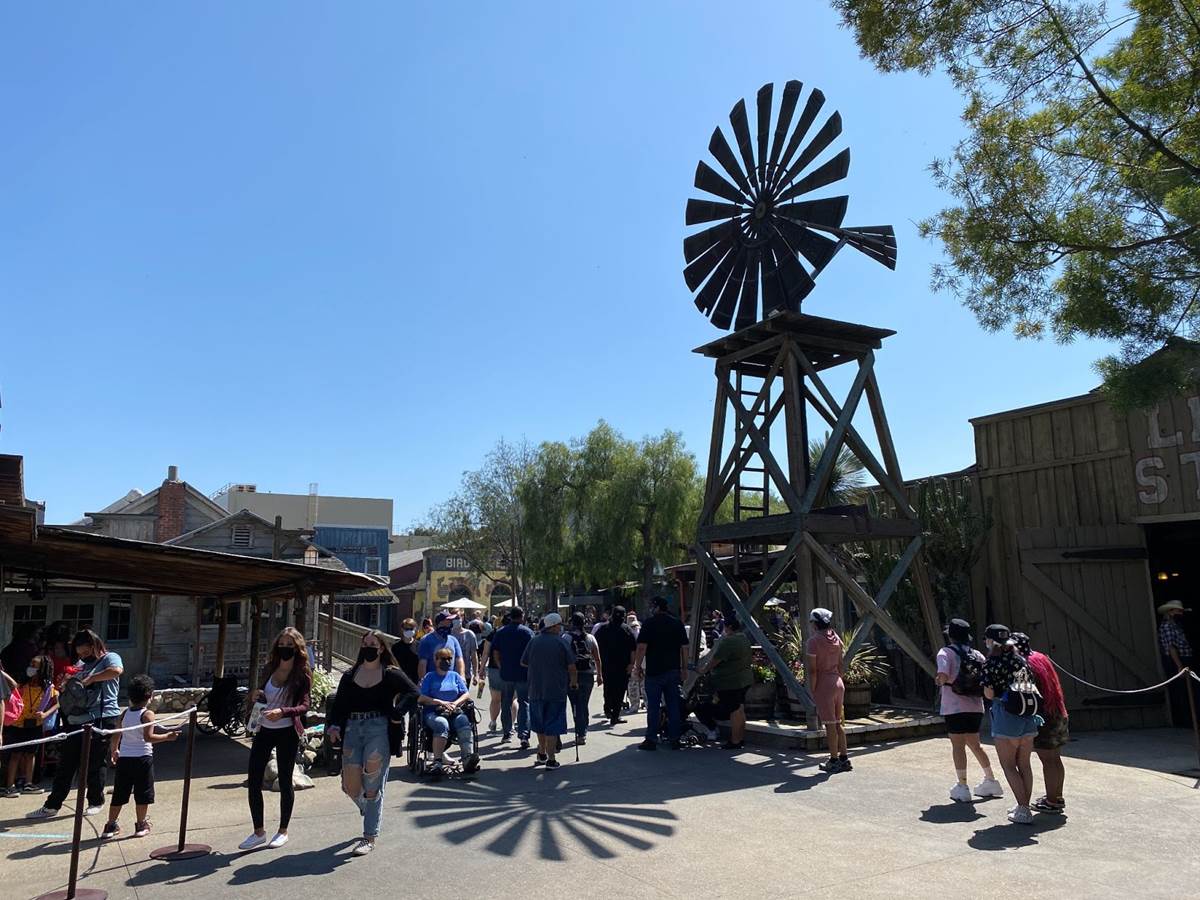 I arrived at Knott’s Berry Farm on Thursday morning with my new season pass and a pre-booked reservation to enter the theme park at 10:00 AM. Crowds were sparse in the early part of the day, though the paths started to feel a little more congested and the queues grew longer as the afternoon progressed later on. A sign posted out front promising “All attractions are open” (except the Stagecoach) turned out to be mostly accurate, as I’ll soon explain.