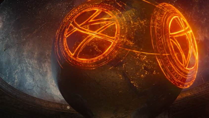 This is also not the first mystical orb of a legendary sorcerer we’ve seen. The Eye of Agomotto isn’t the only relic the sorcerer left behind. The Orb of Agomotto hovers above the Eye in its home in Kamar-Taj, displaying the locations of the three sanctums as Wong and Mordo explain the purpose of these sorcerers to Strange.