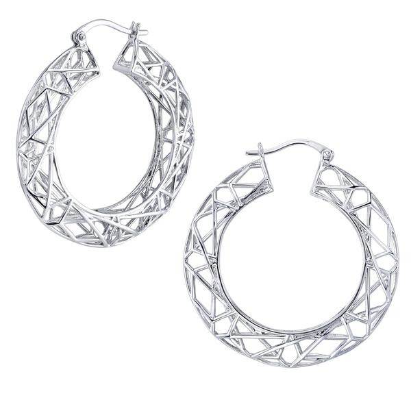 “Sculpted in solid sterling silver and brightly polished, these earrings are a three-dimensional geometric manifestation of the Time Spell used against the dark powers of those who would seek to harm our world. While substantial in size, these hinged hoop earrings are featherweight and infinitely wearable.”