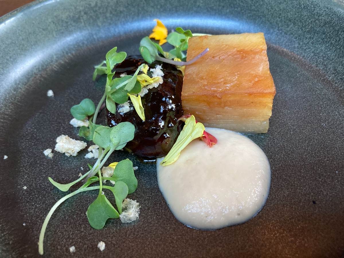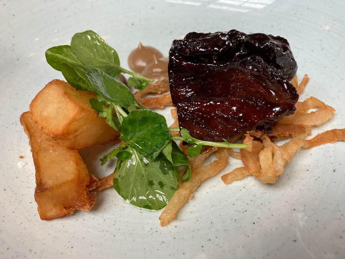 The next new entree was a Whiskey Braised Beef Cheek with triple-cooked duck fat chips, whiskey and vinegar salt, mushroom ketchup and crispy onions.