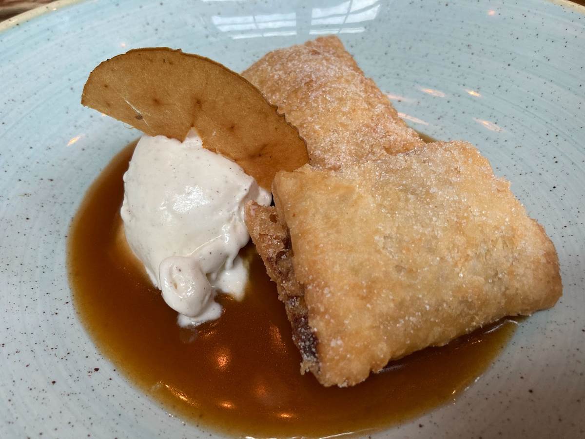 And then we got to the really good stuff: dessert. The first of the two new desserts was the Apple Baked Dumplings with whiskey butterscotch Jameson sauce and milk ice cream. While I enjoyed everything on this new menu, this is the one I’m most excited to get back and try again.