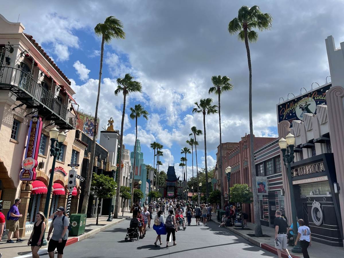 Here’s a look down Hollywood Boulevard with many Guests choosing not to wear a face covering, which are optional in this scenario.