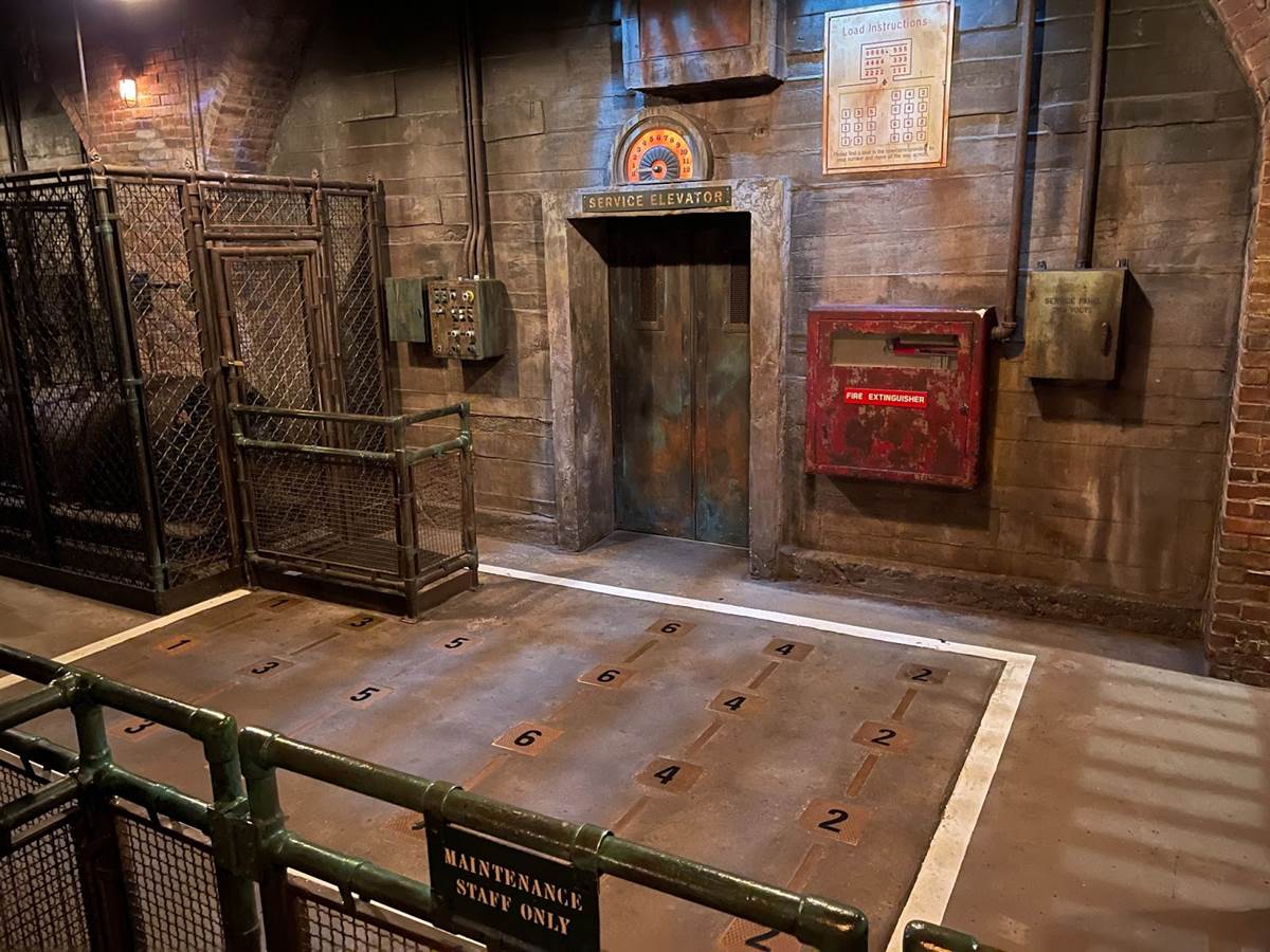 While the plexiglass is gone from the maintenance service elevators, there are still barriers in the indoor queue.
